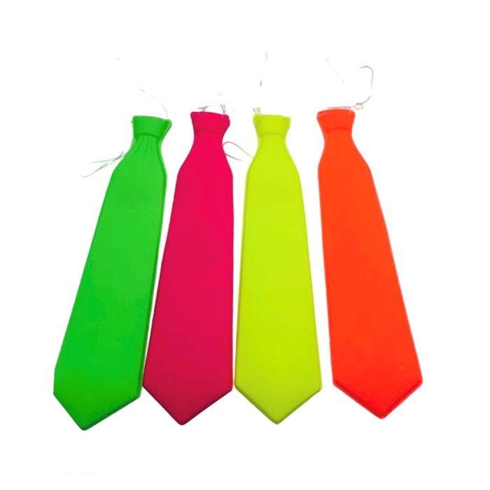 עניבות זוהרות אולטרה בצבעים: ורוד, ירוק, כתום וצהוב.