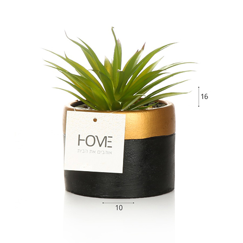 / עציץ שחור פס זהב