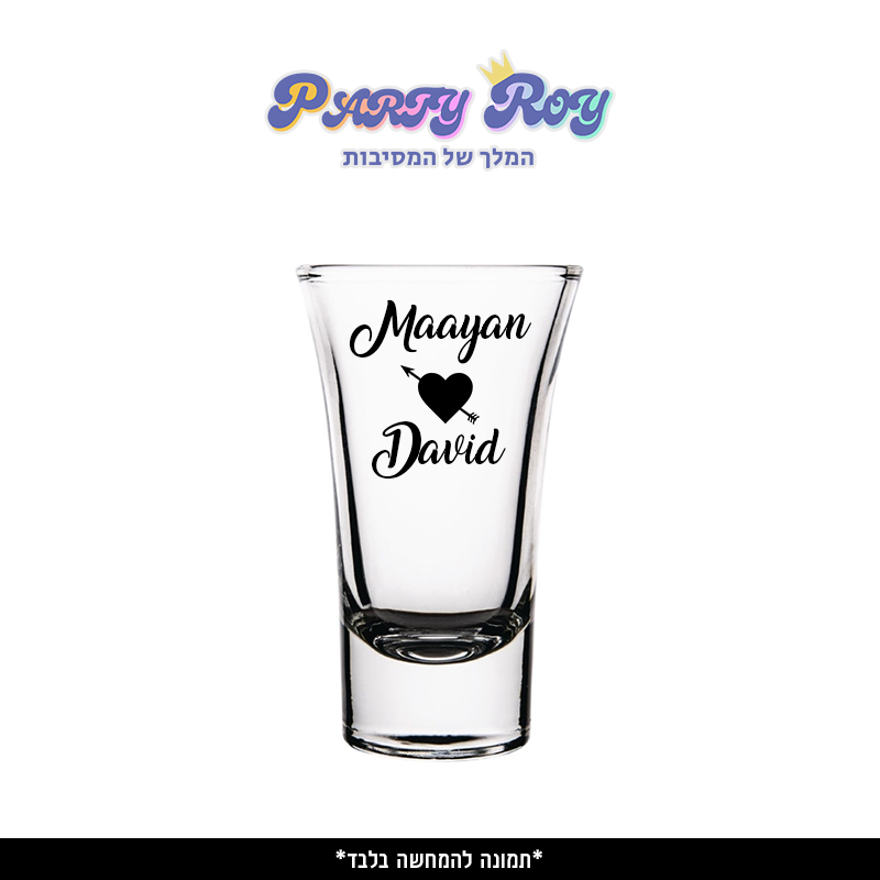 צ'ייסר מודפס במיתוג אישי ובעיצוב לב עם חץ.