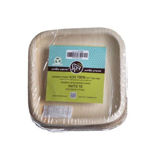 צלחות מרובעות מענפי דקל 13 ס"מ