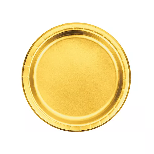 צלחות נייר גדולות בצבע זהב מטאלי.