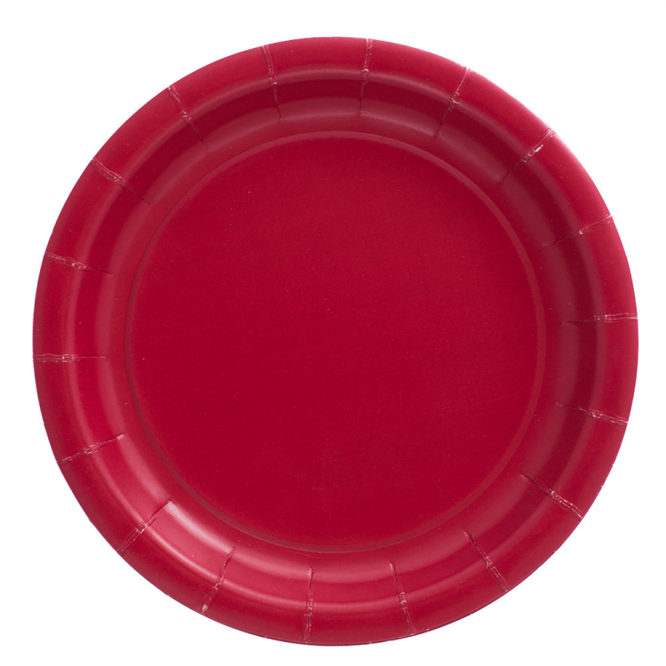 צלחות נייר מתכלה גדולות בצבע אדום.
