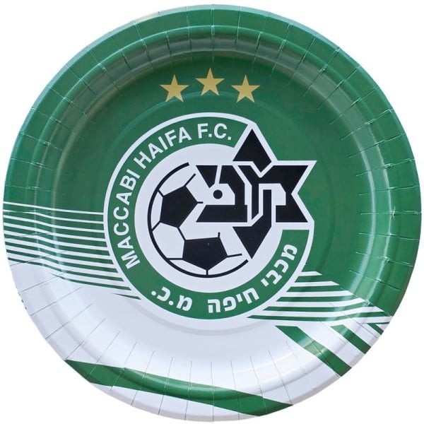 צלחות נייר מתכלה גדולות של המותג מכבי חיפה.