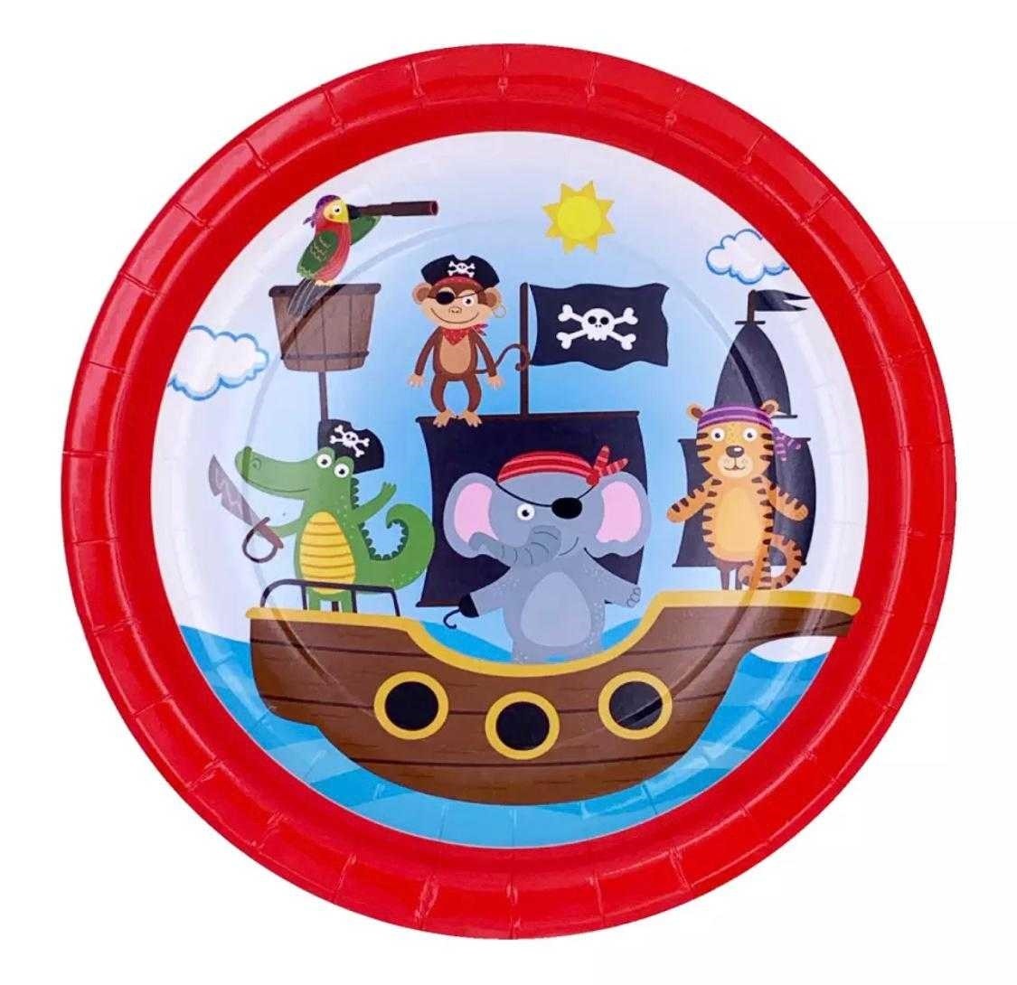 צלחות נייר מתכלה גדולות של המותג פיראטים חיות.