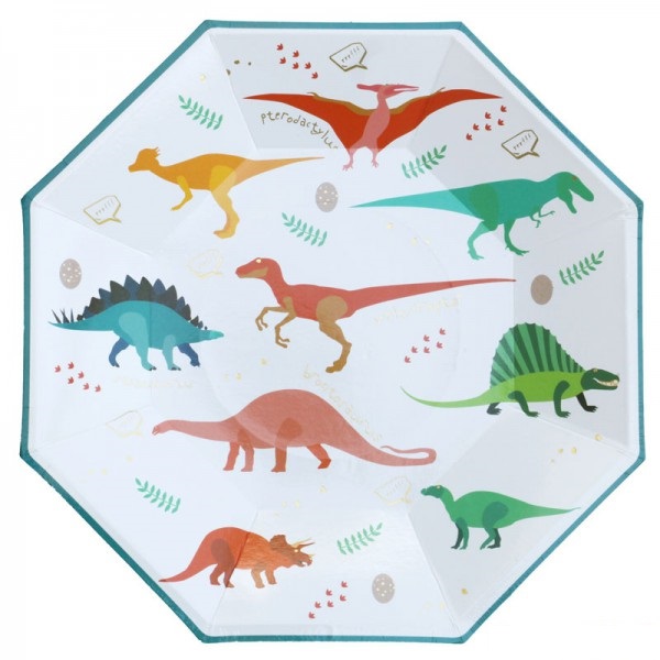 צלחות נייר מתכלה גדולות של המותג דינוזאורים.