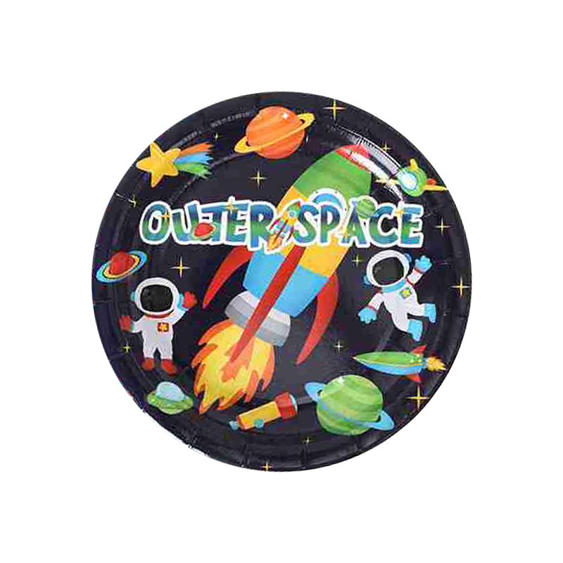 צלחות נייר מתכלה קטנות של המותג חלל.