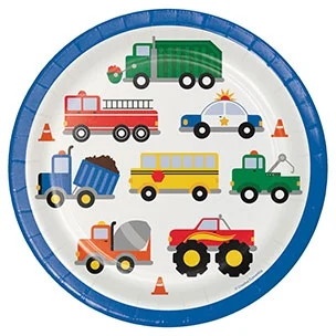 צלחות נייר מתכלה קטנות של המותג כלי תחבורה.
