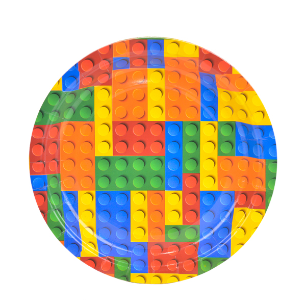 צלחות נייר מתכלה קטנות של המותג קוביות לגו.