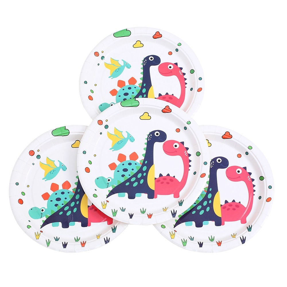 צלחות נייר מתכלה קטנות של המותג דינוזאורים.