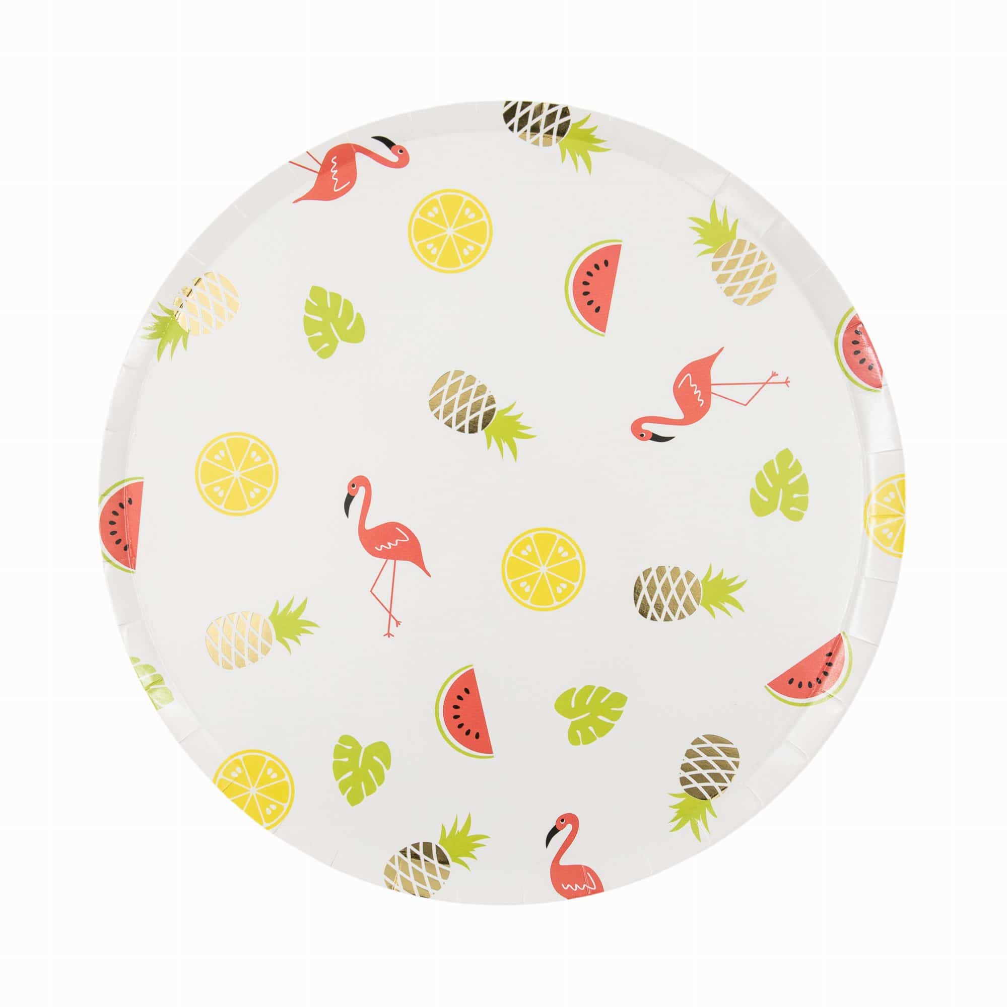 צלחות נייר מתכלה גדולות של המותג קיץ טרופי.