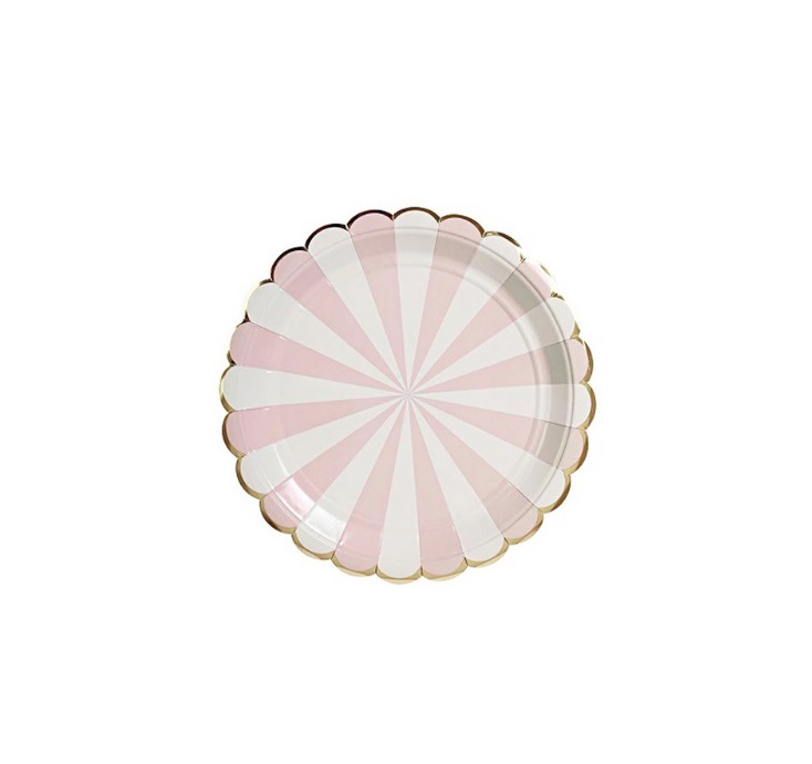 / צלחות נייר קטנות – פסים ורוד לבן