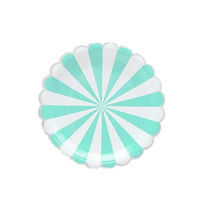 צלחות נייר קטנות – פסים טרוקיז לבן