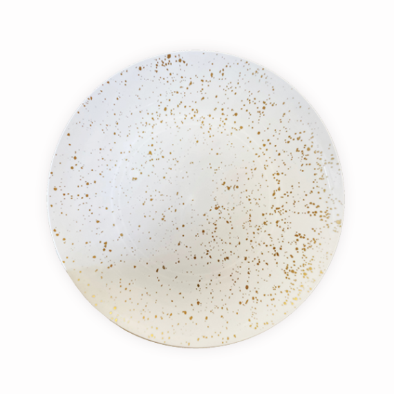 צלחות פלסטיק מהודרות בצבעים לבן וזהב.