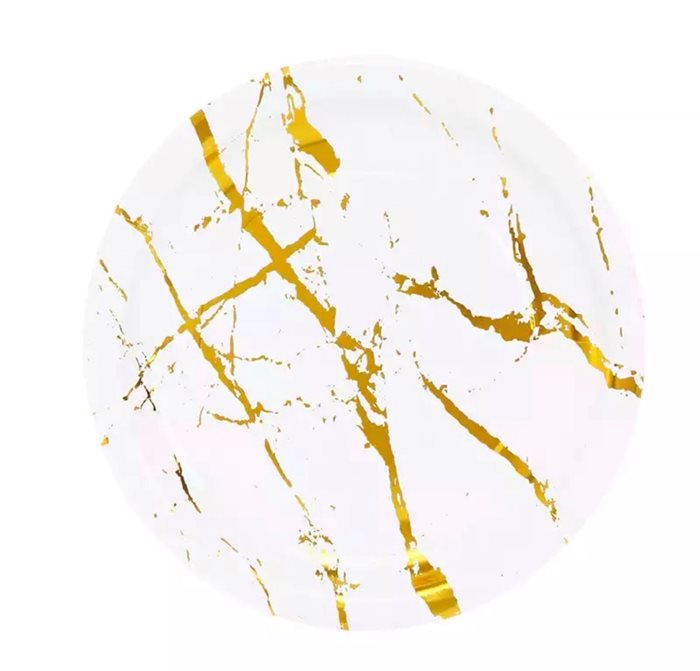צלחות נייר מתכלה קטנות – שיש לבן זהב