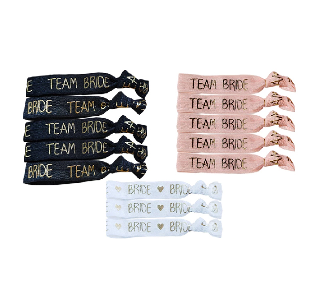 צמידים מבד למסיבת רווקות במגוון סגנונות וכיתוב שונים.