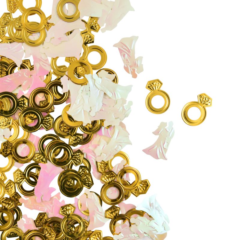 קונפטי בצורת חתן וכלה בצבע זהב ולבן פנינה למסיבת רווקות.
