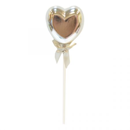 קישוט לעוגה בצורת לב פלסטיק בצבע כסף.