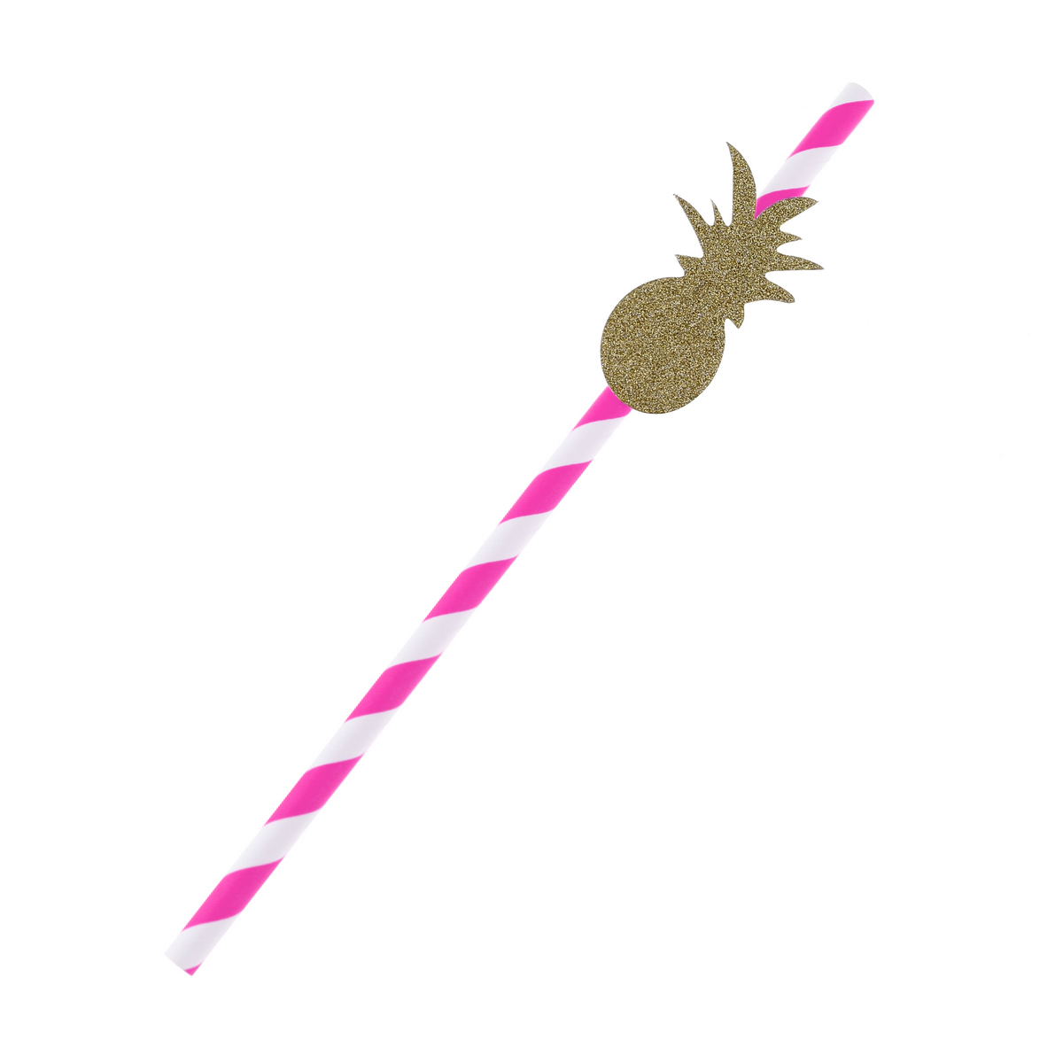 קשיות נייר בצבעים ורוד לבן עם אננס בחיתוך צורני בצבע גליטר זהב.