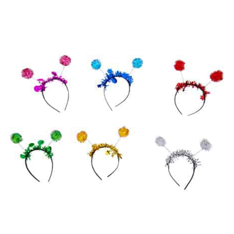 קשתות פונפונים בצבעים ורוד, כחול, אדום, ירוק, זהב וכסף.