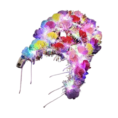 קשתות פרחים עם אור במגוון צבעי פרחים על הקשת עצמה.