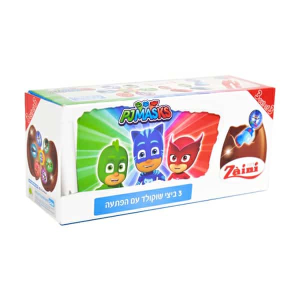 3 ביצי שוקולד חלב עם הפתעה של המותג כוח פיג'יי.