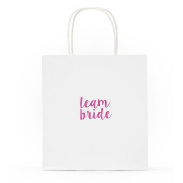 שקית נייר בצבע לבן עם הכיתוב TEAME BRIDE.