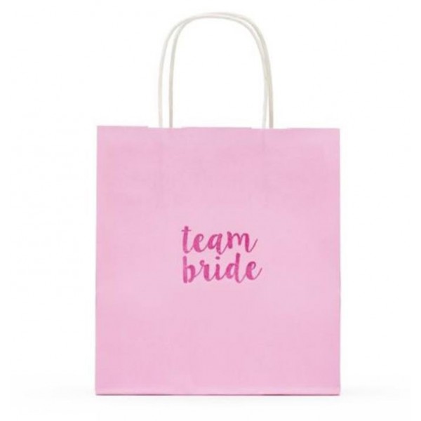 שקית נייר בצבע ורוד עם הכיתוב TEAME BRIDE.