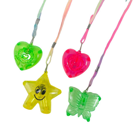 שרשראות זוהרות במגוון צבעים וצורות.