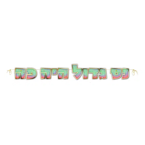 שרשרת באנר אותיות עם הכיתוב נס גדול היה פה.