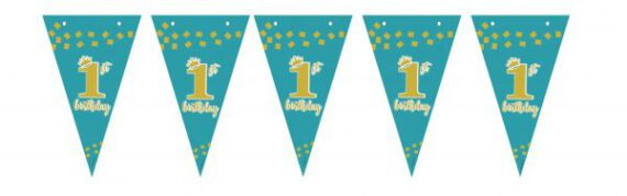 שרשרת דגלים לגיל שנה בצבע כחול לבן.