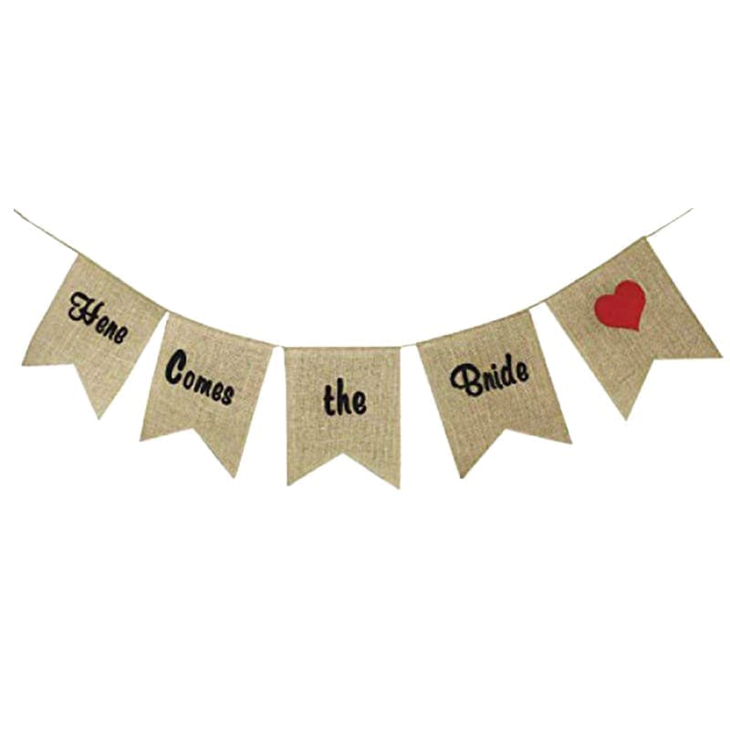 שרשרת דגלים יוטה למסיבת רווקות עם הכיתוב Here Comes The Bride.