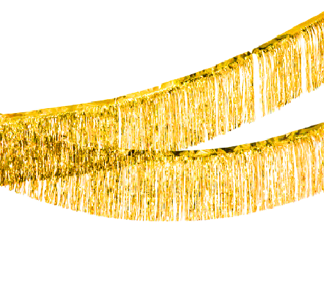 שרשרת טאסלים מוכנה לתלייה בצבע זהב מטאלי.