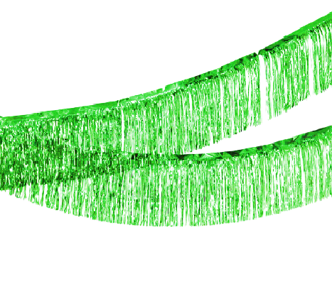 שרשרת טאסלים מוכנה לתלייה בצבע ירוק מטאלי.