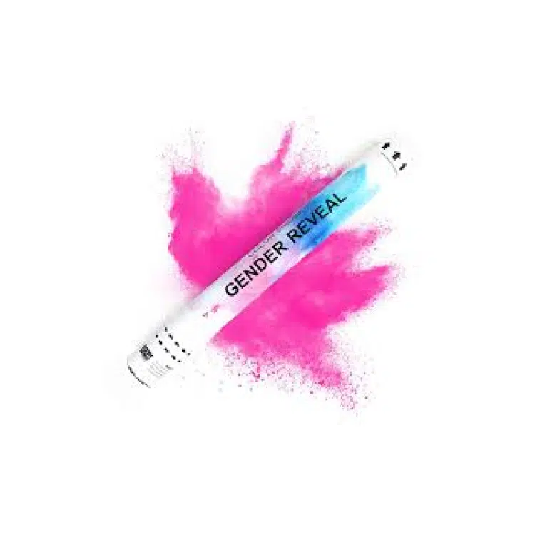 תותח קונפטי אבקה בצבע ורוד.