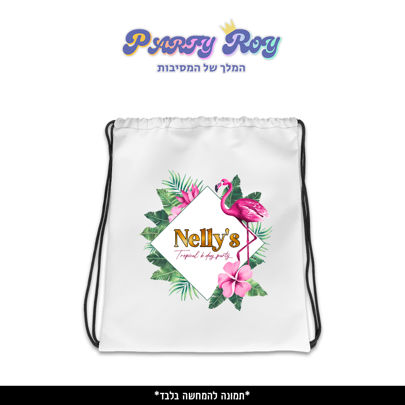 תיק שרוך מודפס במיתוג אישי ובעיצוב טרופי.