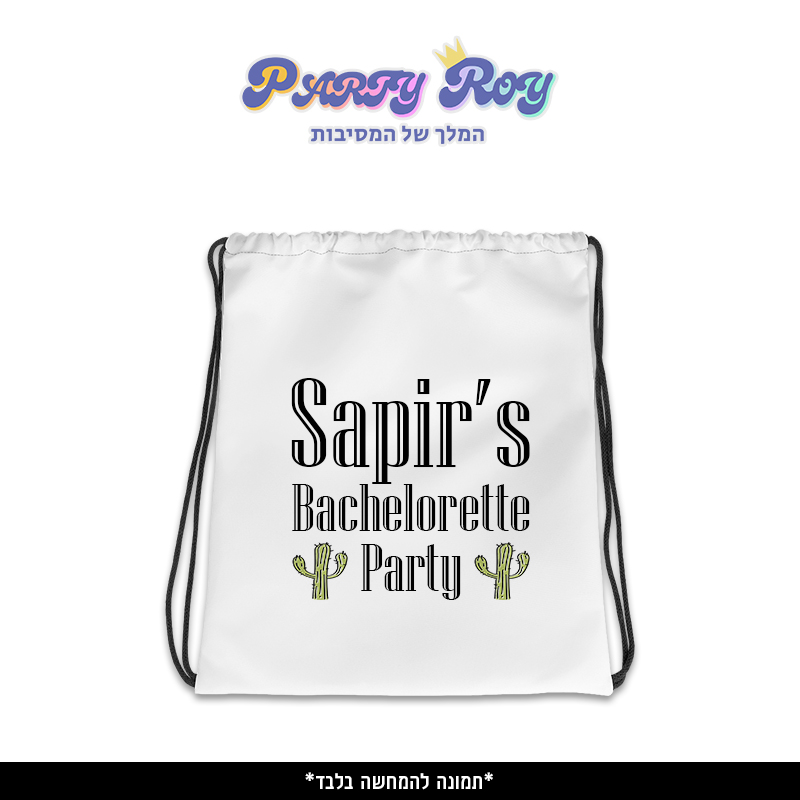 תיק שרוך מודפס במיתוג אישי ובעיצוב מסיבת רווקות.